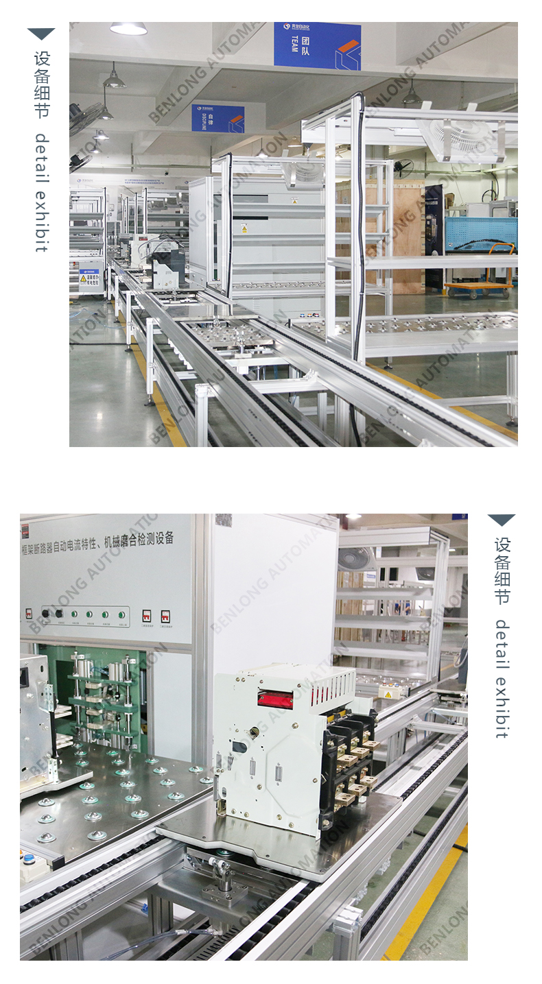 具有装配、锁螺丝、二维码贴标、机械磨合、综合检测、过欠压检测、动作时间、瞬时/延时检测、耐高压检测、回路电阻检测、外观检测、自动下料、