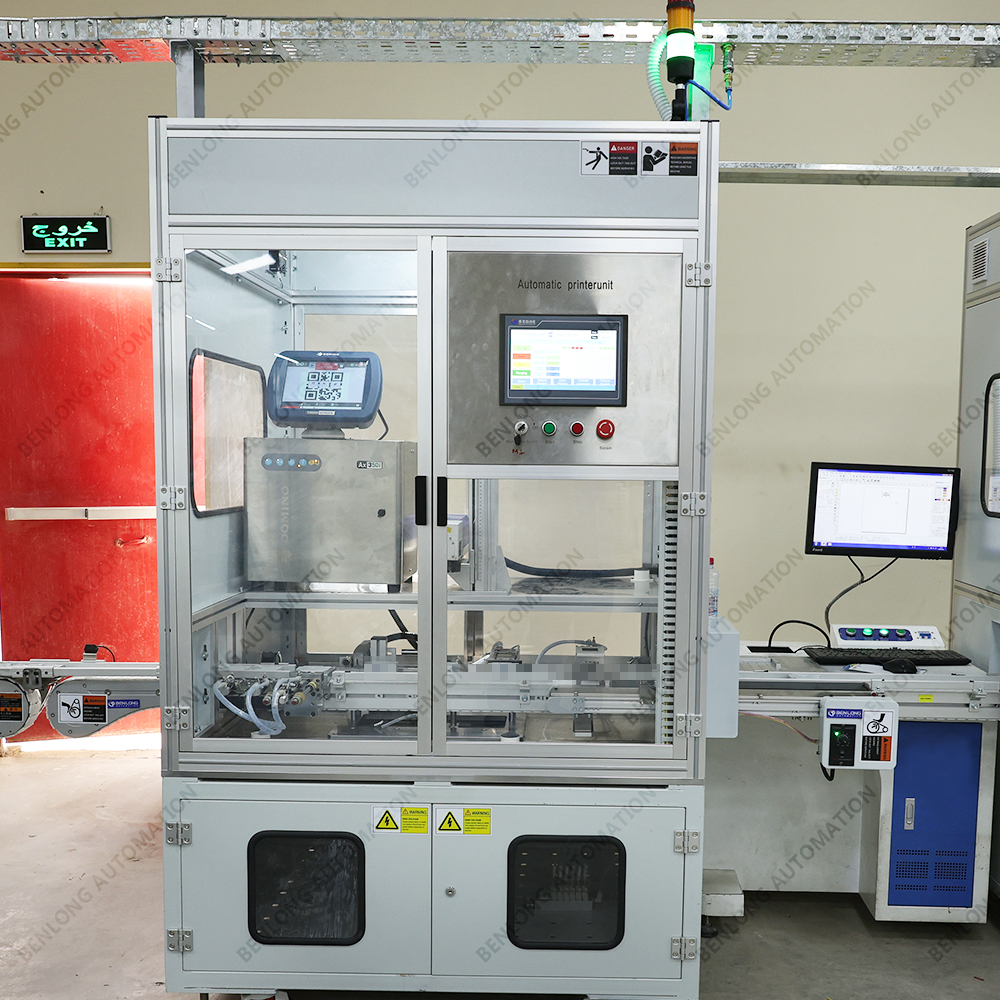 具有自动上料、自动激光打标、自动读码检测、自动下料、缺料报警、90°旋转等工序的在线监测、实时监控、质量溯源、条码识别、关键元器件寿命监测、数据存储、MES系统