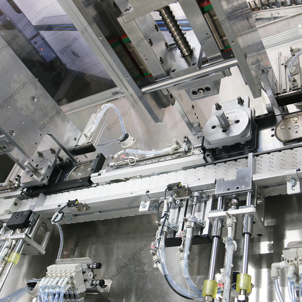 具有自动铆接、CCD检测、不良品区分、缺料报警、翻转竖立等工序的在线监测、实时监控、质量溯源、条码识别、关键元器件寿命监测、