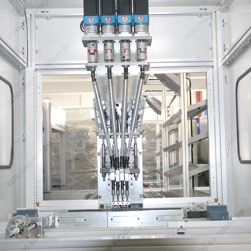 具有自动上料、扭矩检测、下料、缺料报警、90°旋转等工序的在线监测、实时监控、质量溯源、条码识别、关键元器件寿命监测、数据存储、