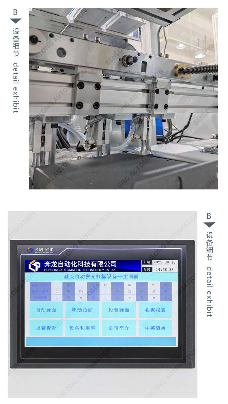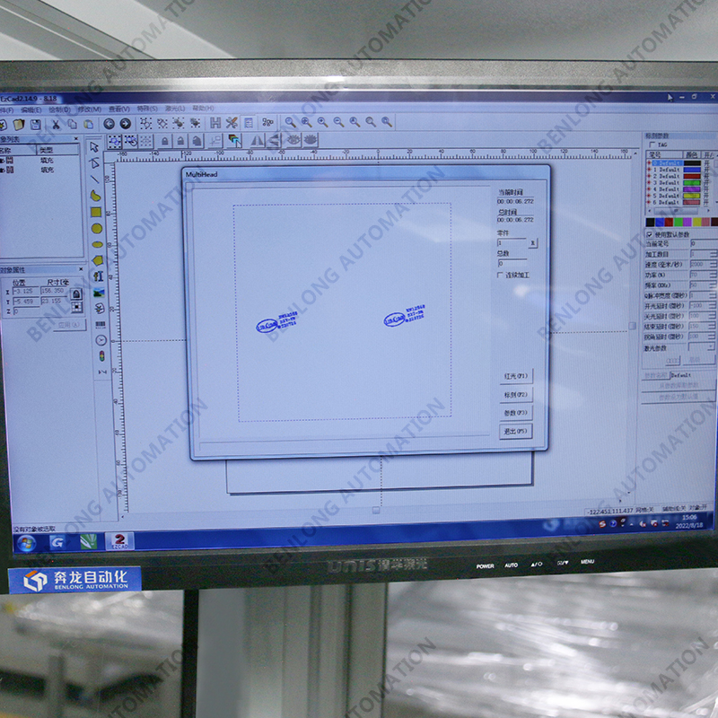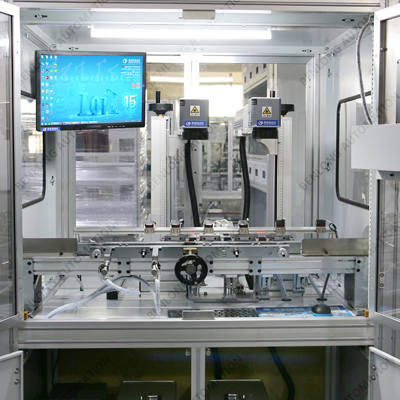 具有自动上料、精密加工、激光打标、自动下料、除尘、不良品区分、缺料报警等工序的在线监测、实时监控、